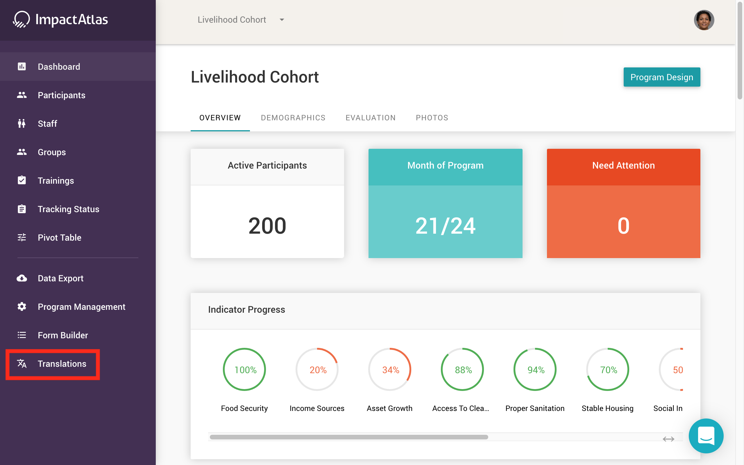 The translation tool, located the bottom of the left navigation panel, is helpful when you want to translate forms you have created. You can find the tool here: