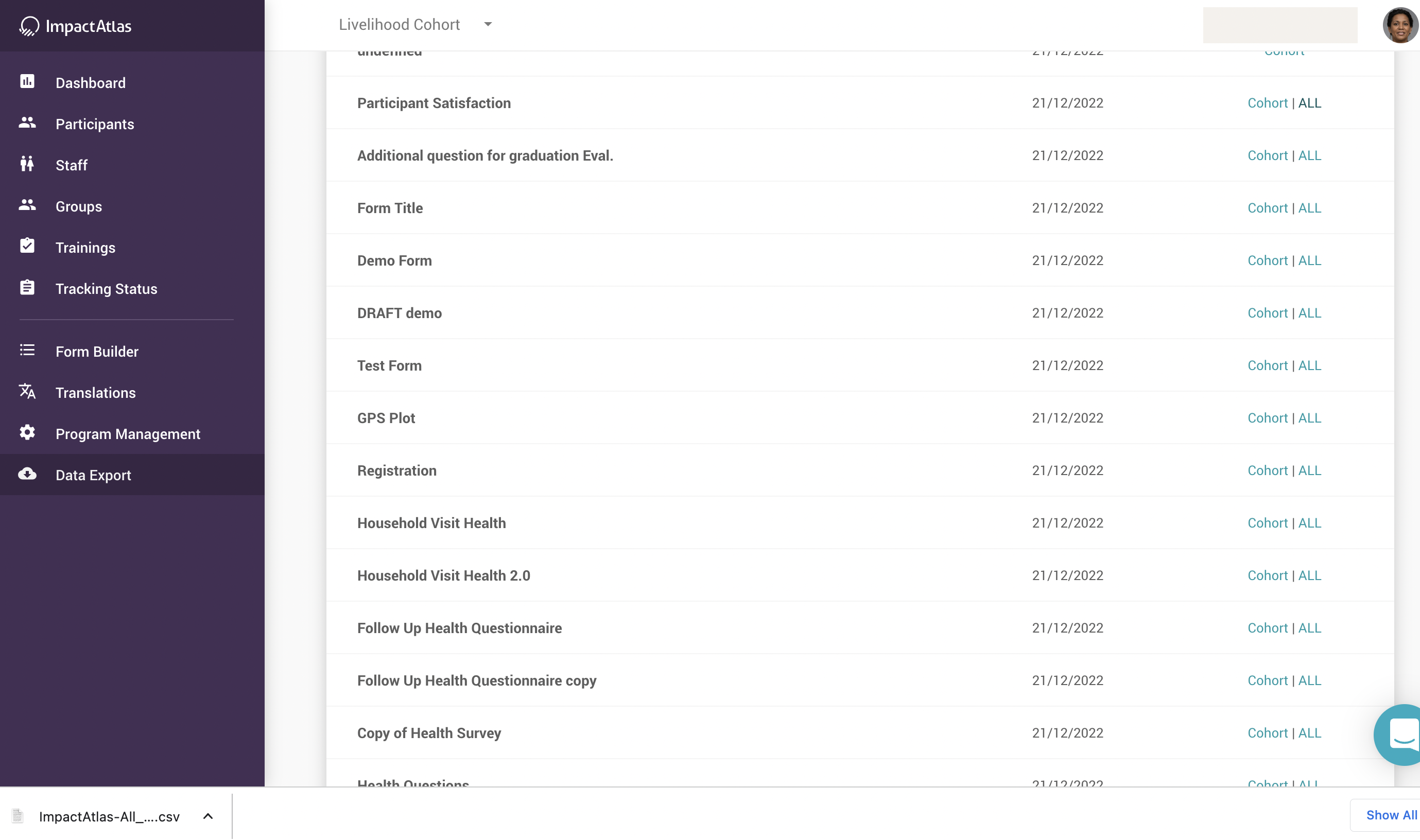 Now in IA, you can download the data of your surveys for all cohorts at once either through APIs or CSV files.