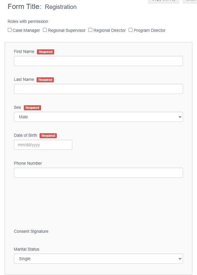 1. Registration: a survey that collects basic registration information of a participant.